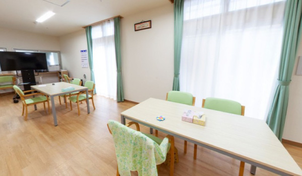 共有スペースでは、ご入居者様にゆったりとおくつろぎいただけます。広々とした空間となっており、車椅子をご利用の方もスムーズに移動していただけるため、安心してお過ごしいただけます。